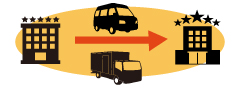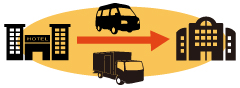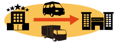 ホテルからホテルや、駅や空港からスーツケースを当日配達いたします。手ぶらでチェックアウト。次のホテルにチェックイン時にはもうお客様のスーツケースは届いています。