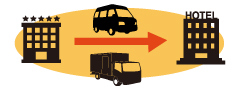 ホテルからホテルや、駅や空港からスーツケースを当日配達いたします。手ぶらでチェックアウト。次のホテルにチェックイン時にはもうお客様のスーツケースは届いています。
